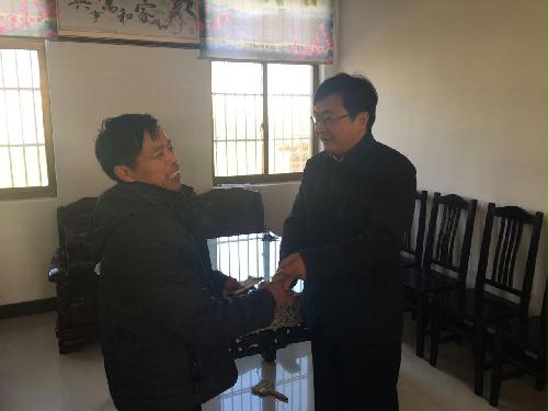 1月22日,由市委农办吴晓春主任、陆文杰副主任带队开展了走访农户、走访企业、走访村居活动。"走帮服"活动小组走访慰问了高新区30户重点贫困家庭,除送上慰问金和新春祝福外,还深入了解困难家庭现状,为与社区共同建立"一户一卡"档案,全力提升困难家庭自我发展、摆脱困境的能力,明确重点帮扶方向打下了工作基础。在走访时,吴主任看到一户困难家庭中有一个女儿正在读技校的时候,吴主任鼓励她要坚定信心,自强不息,克服困难,争取早日回报家庭,回报社会。