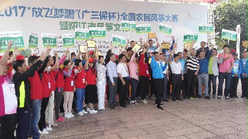 由中国农民体育协会主办,广东省农业厅、省农民体育协会和阳江市人民政府承办的广三保杯2017“放飞梦想”全国农民风筝大赛28日-30日在广东省阳江市举办。来自北京、天津、山东等省市的19支队伍,在龙串类、软翅类、硬翅类10个类别的风筝赛事中展开角逐,展示不同流派风筝的魅力。比赛使传统体育健身项目呈现出新的生机与活力。来自北京的沙燕、天津的软翅蚂蚱、河北的“福满人间”、江苏南通港闸区新园村的六角板鹞、东道主的“灵芝”等悉数亮相,各展风采。风筝各大流派的代表用精湛的技艺和精美的造型,以及美好的喻意为大家奉献了一场色彩斑斓的风筝盛宴。