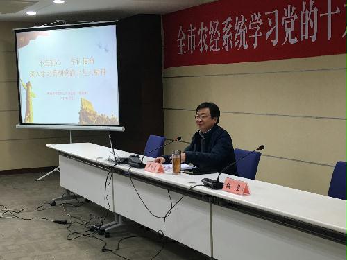 11月7日下午,市委农办组织举办全市农经系统学习党的十九大精神专题讲座,市委农办全体党员干部,各县(市)区农办主要领导及分管党务工作的负责同志,聆听了市委农办主任吴晓春作的<<不忘初心>>主题宣讲报告。